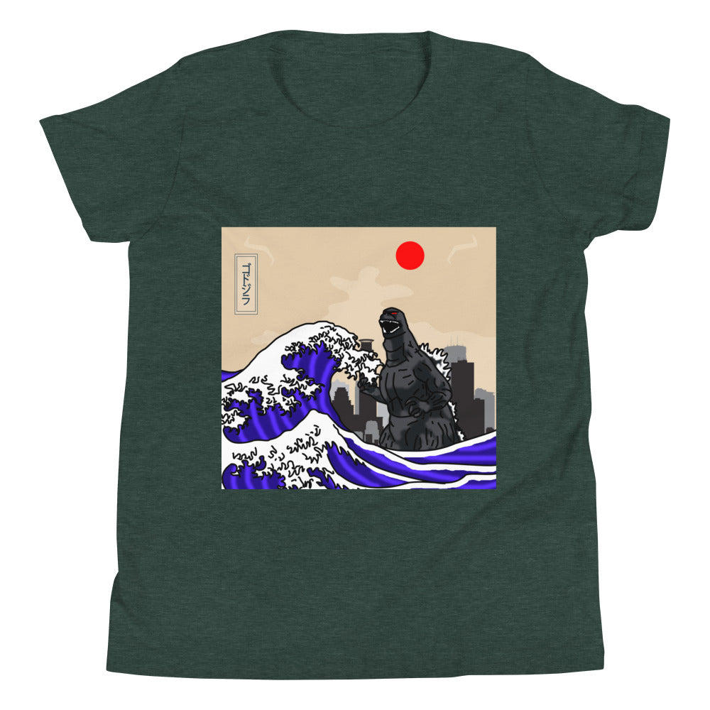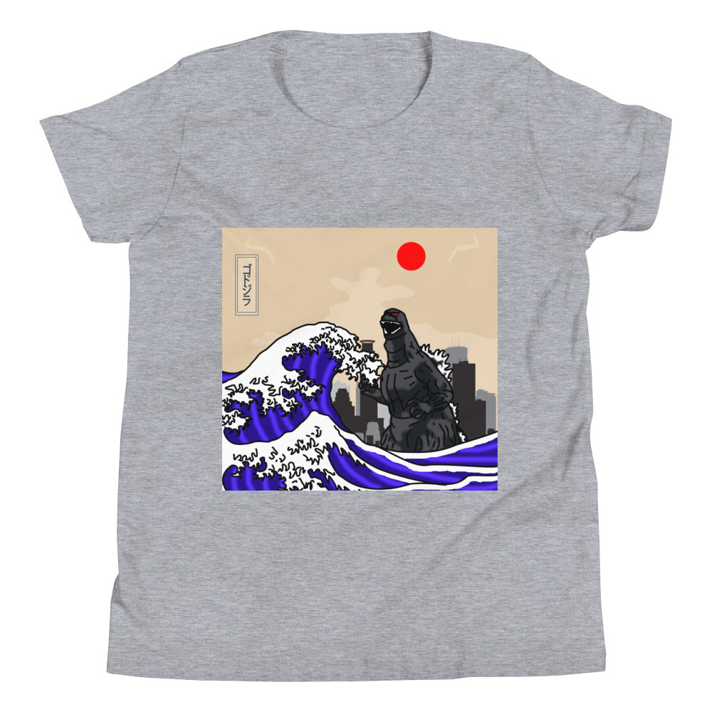 This is the tee that you've been looking for, and it's bound to become a favorite in any youngster's wardrobe. It's light, soft, and comes with a unique design that stands out from the crowd wherever you go! Iconic JDM Legend tsunami kaiju on front with katakana sign. JDM ZILLA Tsunami Kaiju Youth Short Sleeve T-Shirt.