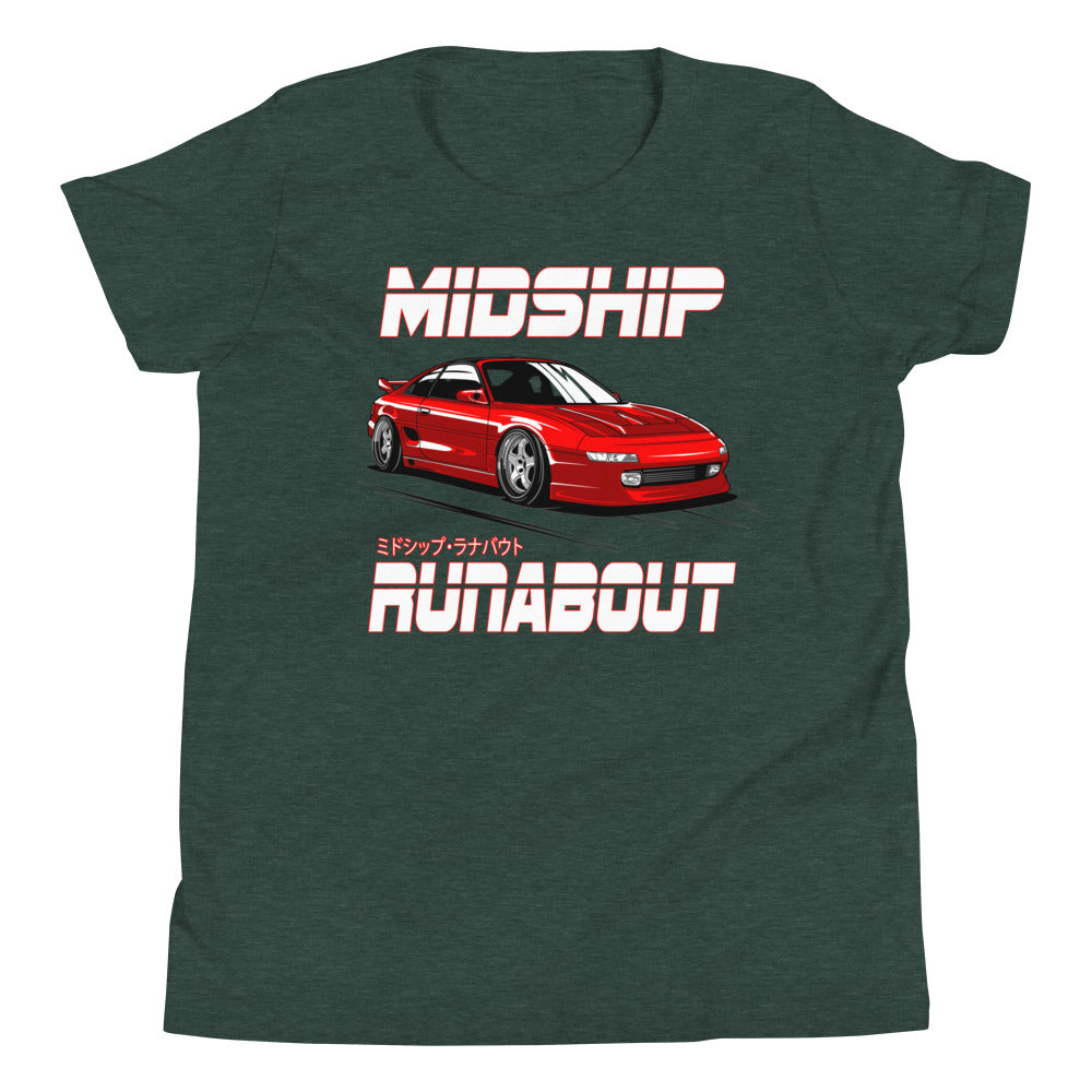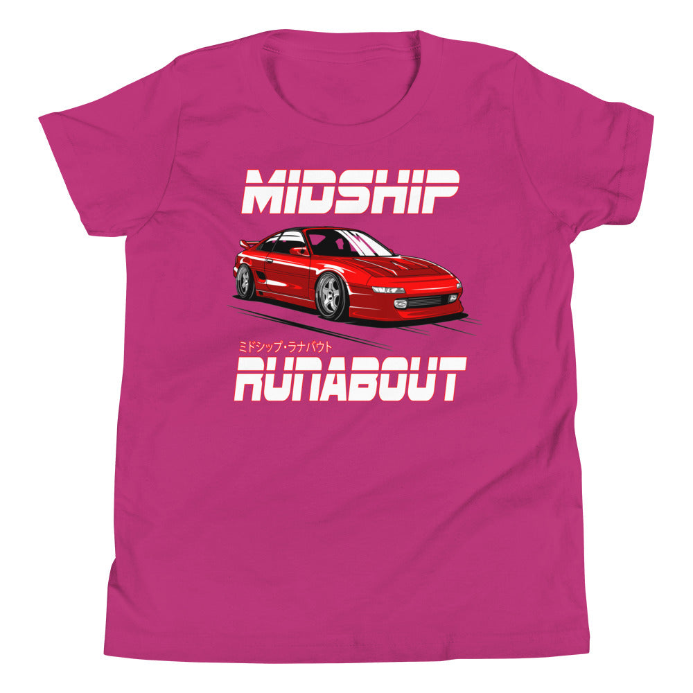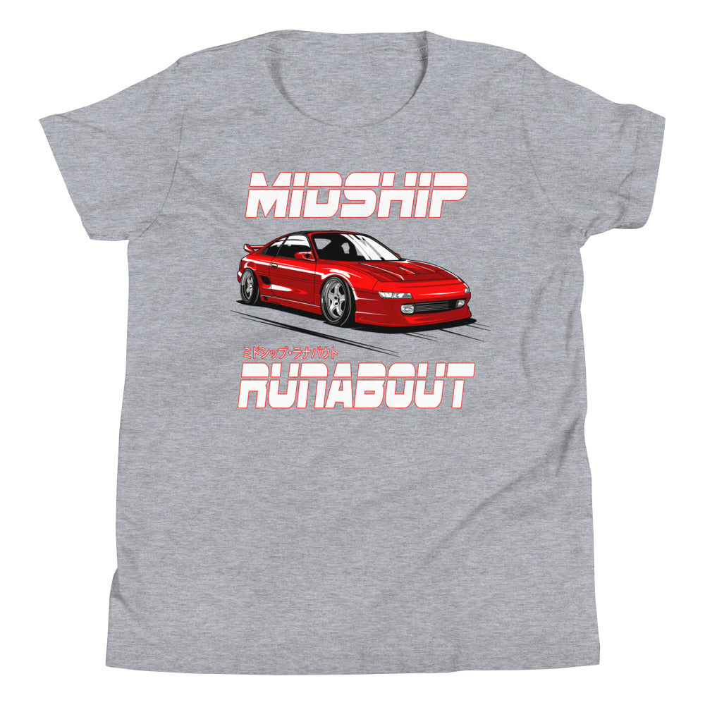 This is the tee that you've been looking for, and it's bound to become a favorite in any youngster's wardrobe. It's light, soft, and comes with a unique design that stands out from the crowd wherever you go! Great car graphic tees for your kids. Midship Runabout JDM SW20 Youth Shirt.