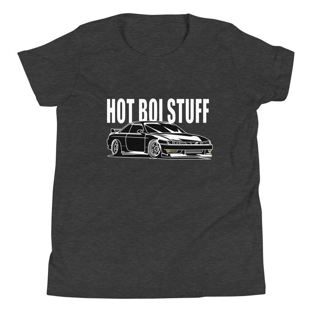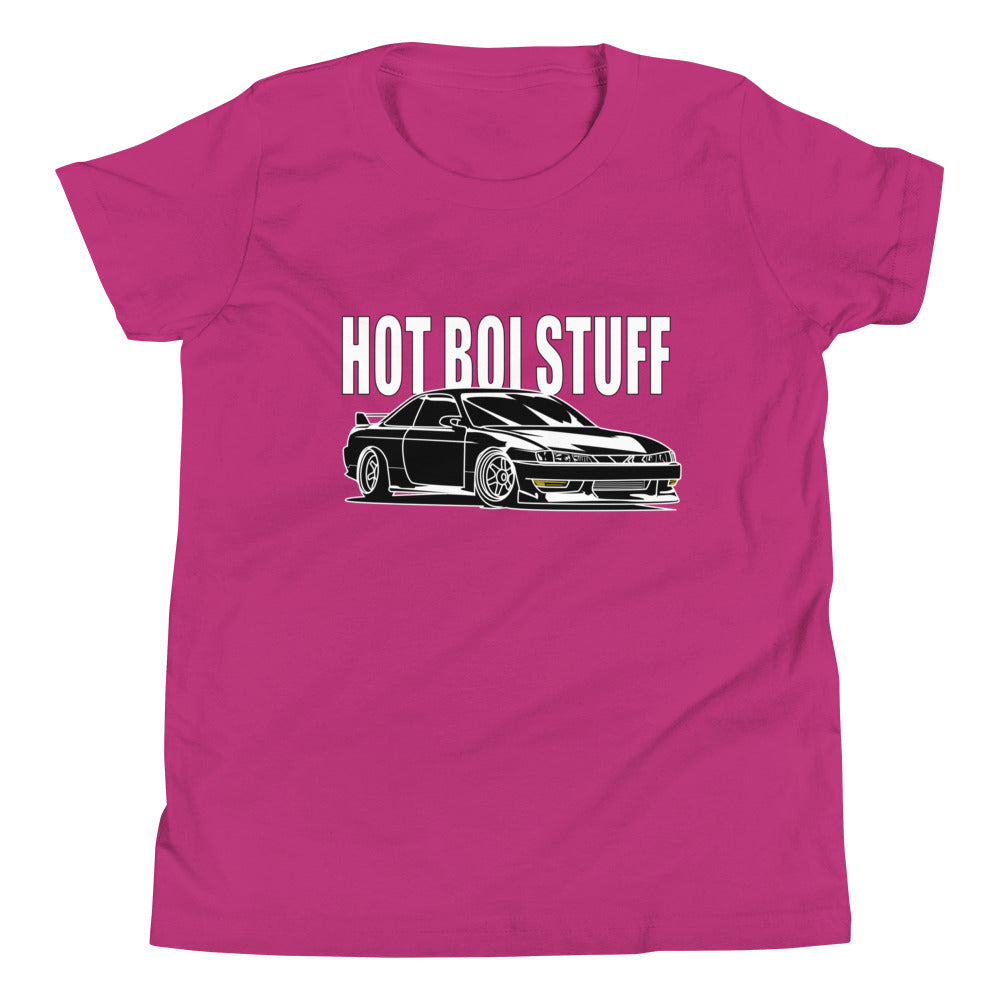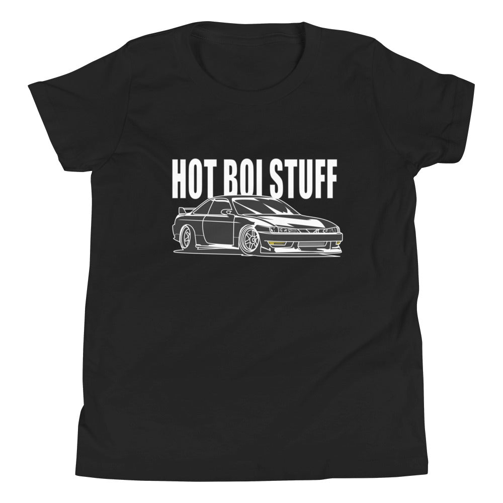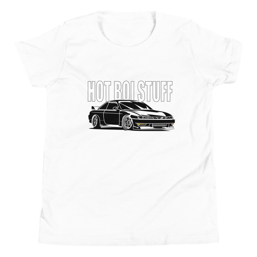 This is the tee that you've been looking for, and it's bound to become a favorite in any youngster's wardrobe. It's light, soft, and comes with a unique design that stands out from the crowd wherever you go! Nissan 240sx S14 Kouki JDM Hot Boi Stuff. S14 Kouki JDM Hot Boi Stuff Youth Short Sleeve T-Shirt.